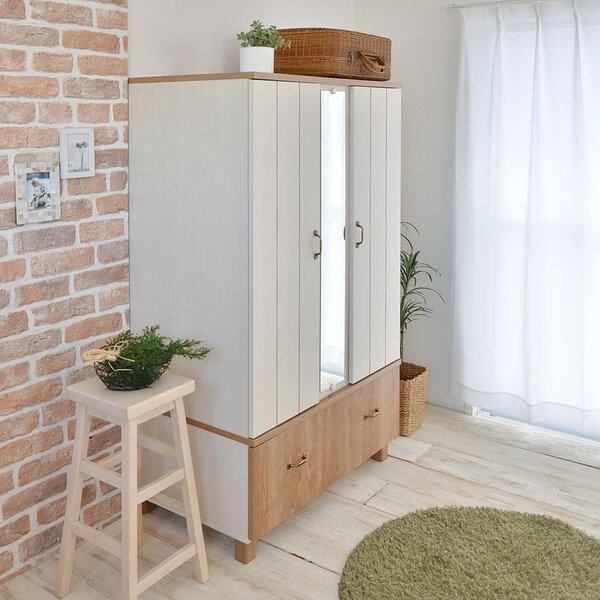美しいデザインと機能性を兼ね備えた鏡付きワードローブ(90cm幅)。クローゼットやロッカーとして活躍し、洋服収納に最適な一台です。