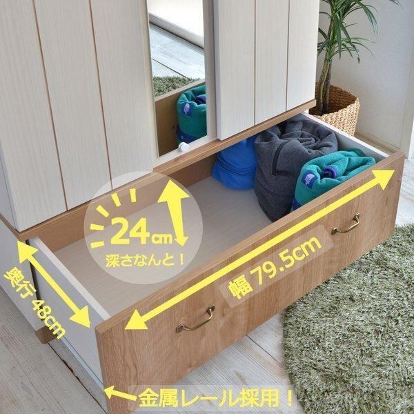 引出し一杯付き 引出レール付き ミラー付き パイプハンガー付き 転倒防止バンド付
