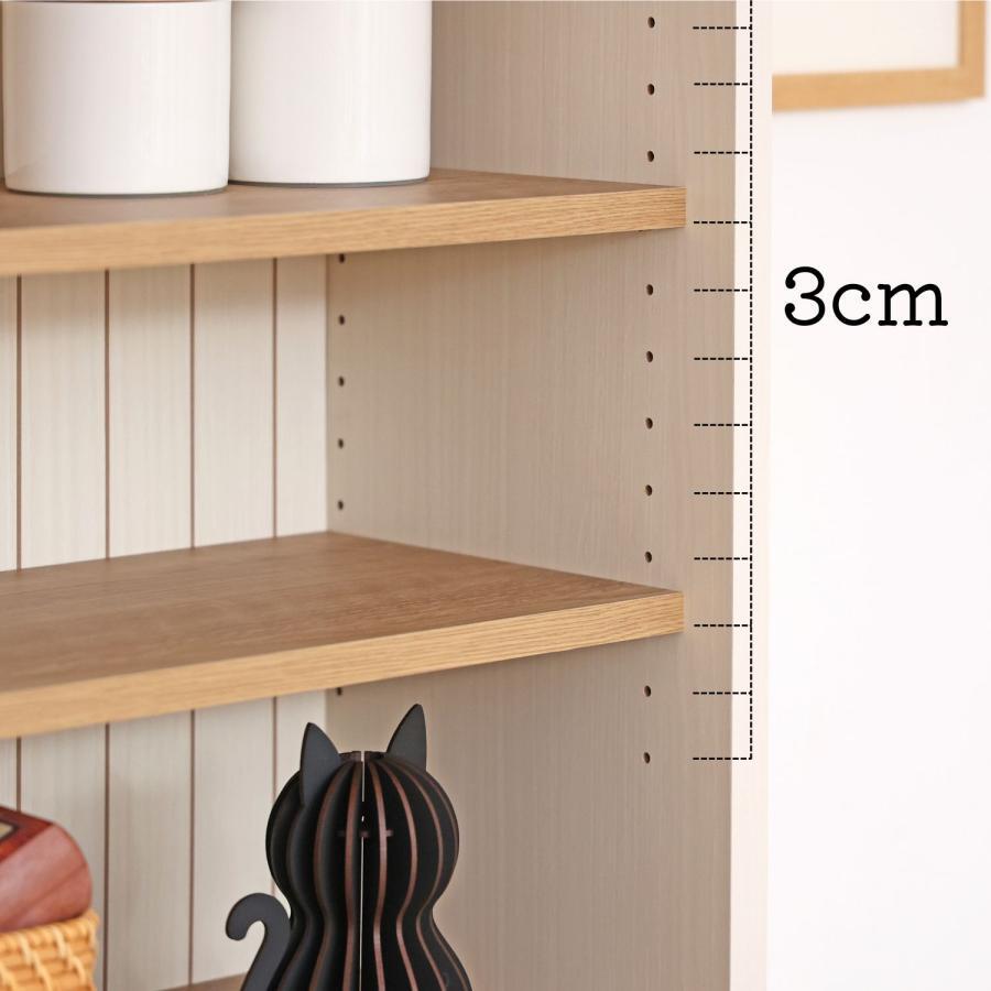 上部は3cm間隔12段階で調整可能な可動棚2枚付きです