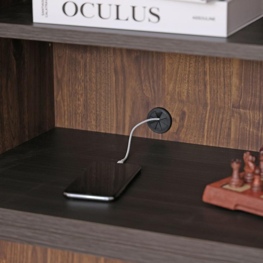 オープン部に充電コード等が通せる配線穴付き。組み立ての際に穴位置を左右お好きな方に設定できます。※間口の広い方でのみ設定可能。