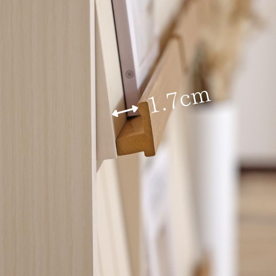 ディスプレイしたまま扉の開閉が可能です。(引き手の溝には厚み約1.6cm程度までのものを飾ることができます)