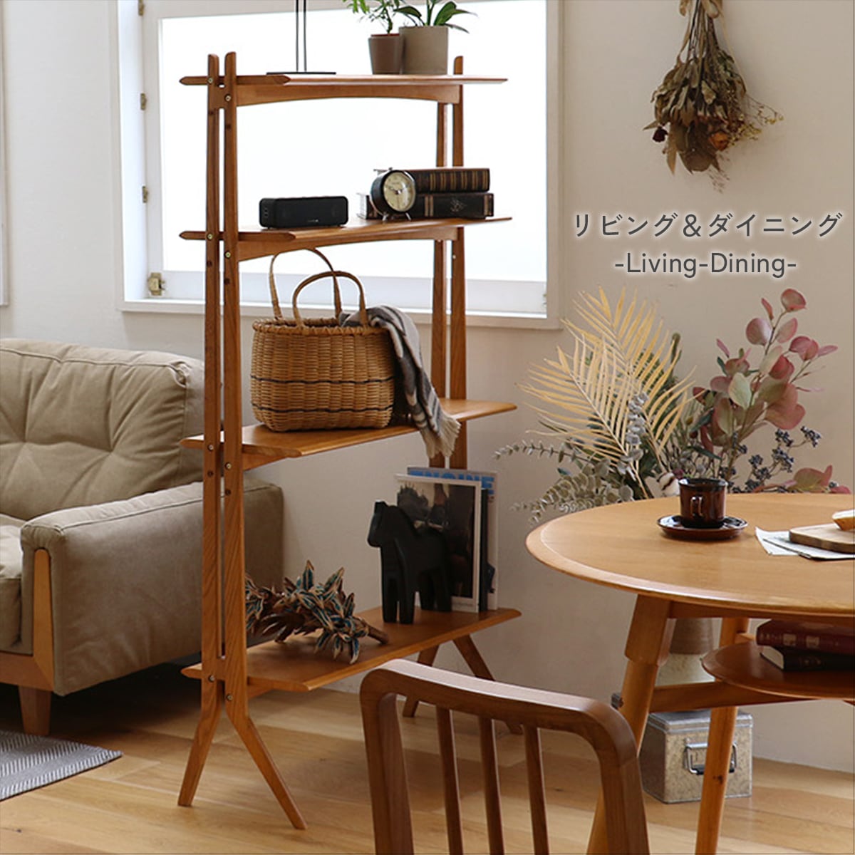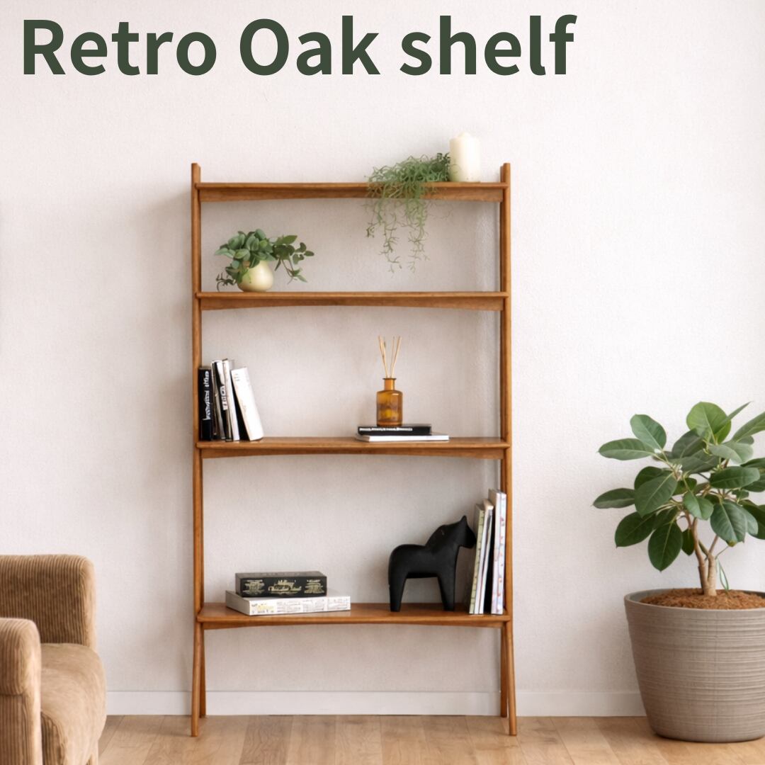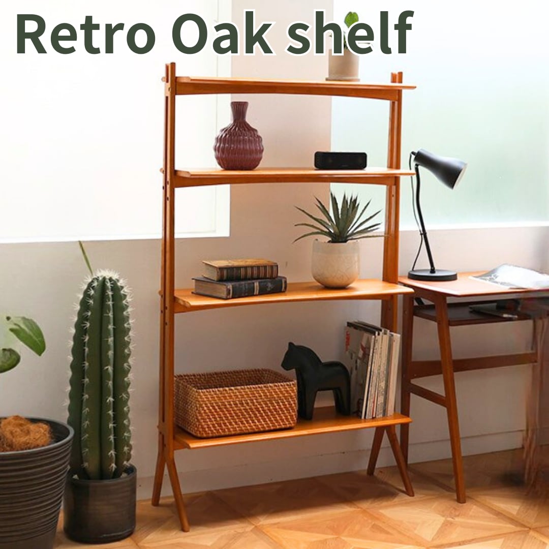 オーク材 オープンシェルフ 木製 北欧 レトロ 飾り棚 収納